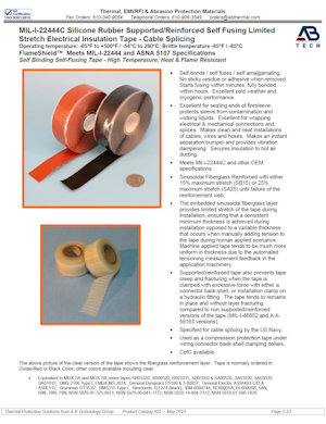 Tapes meeting Mil-I-22444 provide superior electrical insulation with a minimum of 350 volts per mil (.001") of tape thickness at 365°F / 180°C. A 20mil tape therefore provides 7000 volts per wrap of insulation value.